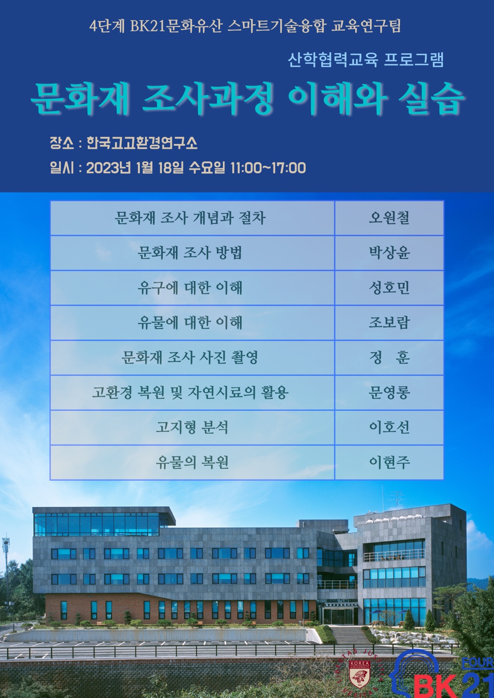 고려대학교 세종캠퍼스 인근 한국고고환경연구소에서 오프라인으로 진행됩니다.