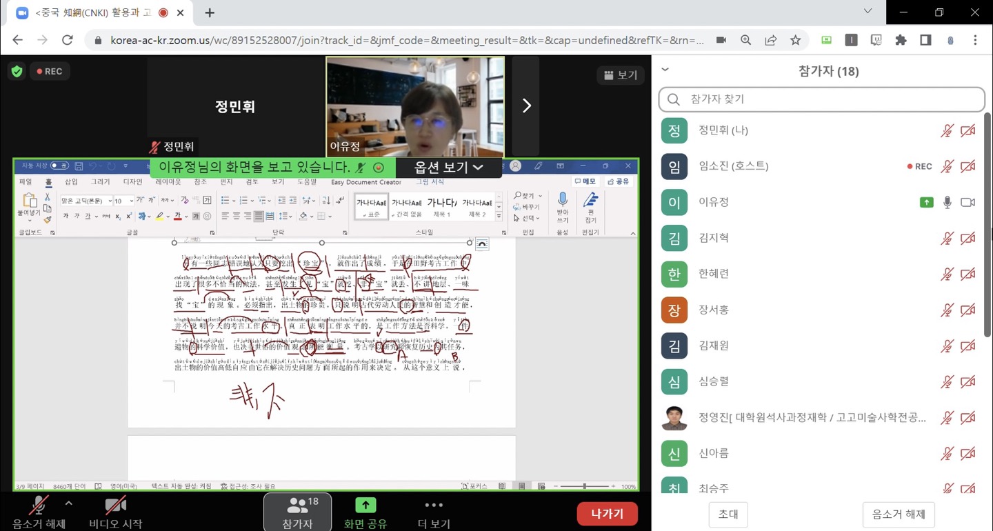 [4단계 BK21] 연구 역량 강화를 위한 비교과프로그램 (중국 학술 문헌 강독) 18회차
