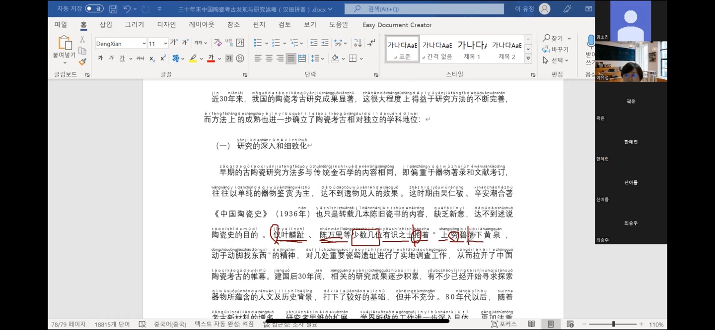 34회차에는 <三十年来中国陶瓷考古发现与研究述略>논문의 강독을 마무리하며 다시한번 요약하고 복습하였다.
