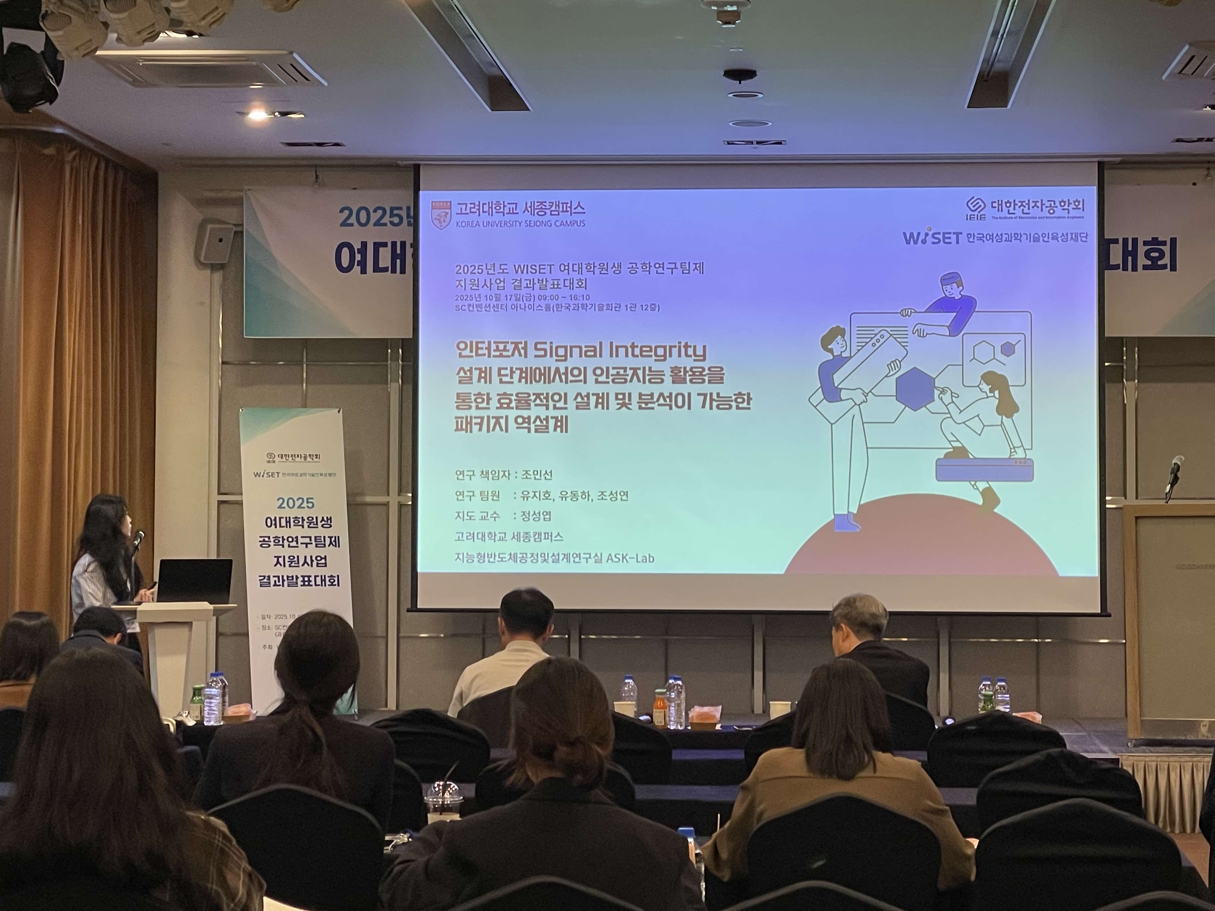 고려대학교 세종캠퍼스(부총장 양지운) 지능형반도체공학과 연구팀이 2025년도 한국여성과학기술인육성재단(WISET) 여대학원생 공학연구팀제 지원사업 결과발표대회에서 대한전자공학회 회장상을 수상했다. 이번 대회는 10월 17일 서울 SC컨벤션센터에서 개최되었으며, 전기전자반도체 분야 17개 연구팀이 참가해 7개월간의 연구 성과를 발표했다.