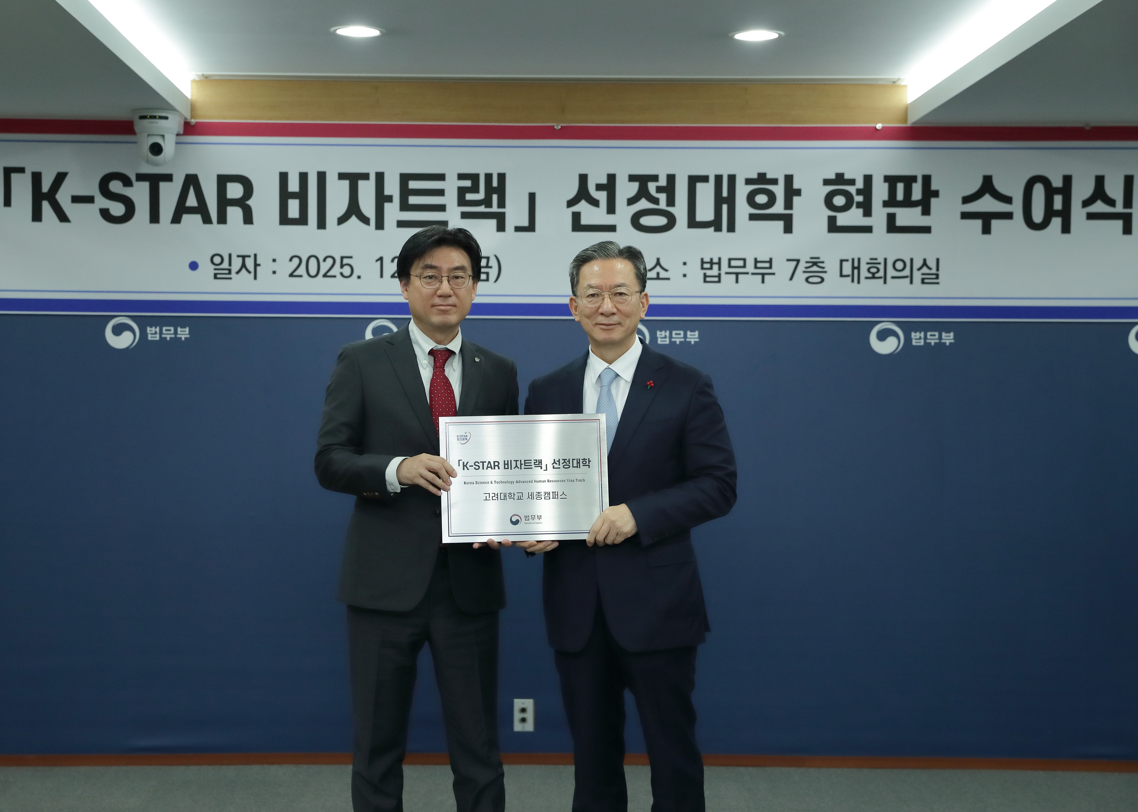 고려대학교 세종캠퍼스(부총장 양지운)가 법무부가 신설한 국가 핵심 인재정책인 ‘K-STAR 비자트랙’ 참여대학으로 최종 선정되었다. 이번 선정은 이공계 석·박사 과정의 우수 외국인 유학생에게 장기 체류와 정주를 지원할 수 있는 제도적 기반을 갖추게 되었다는 점에서 큰 의미를 갖는다.